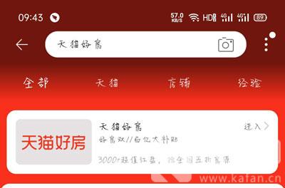 2、也可以通过搜索框,搜索【天猫好房】,然后点击搜索结果中的天猫好房进入;
