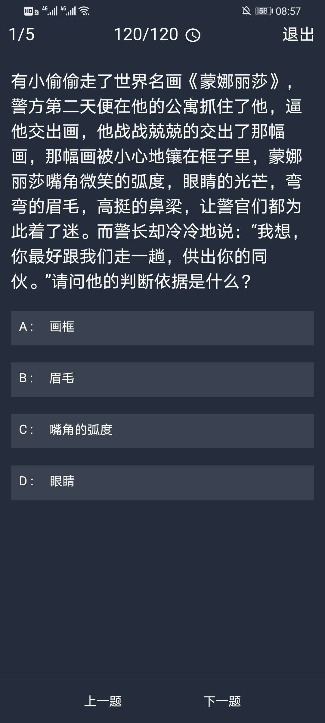 答案解析:蒙娜丽莎是没有眉毛的,这幅画“弯弯的眉毛"很显然是一幅高仿品,真画早就被同伙带走了。
