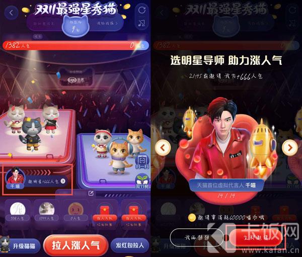 每天第一次进入淘宝超级星秀猫活动,点击【比拼赢红包】进入队伍,就可获得当前等级对应的人气值,1级=10人气值;