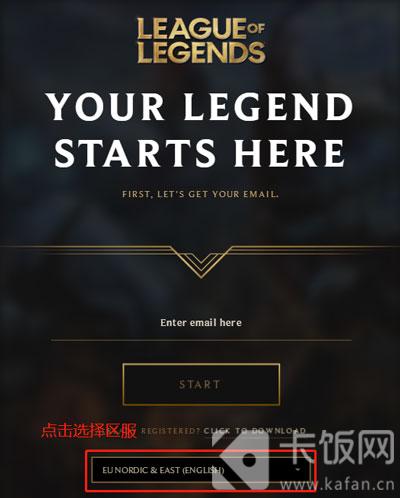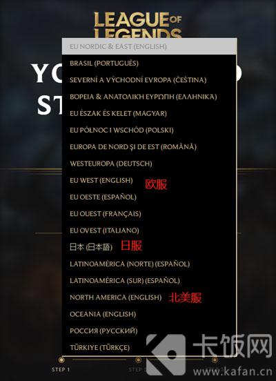 3、打开网址之后,点击选择区服,大家可以根据自己的需求选择区服,建议大家选择“日本”,因为日本的地理位置离我们比较近,而且目前日服延时是最低的,当然如果希望语言是英文,可以选择“北美服”;