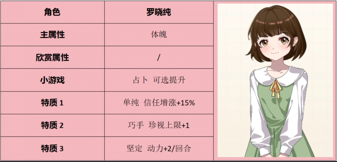 好啦,以上就是关于学生时代罗晓纯属性怎么样的详情介绍了。想要获取更多游戏相关攻略和资讯的小伙伴欢迎关注游戏,这里每天都会有最新最全的游戏内容推荐哦!一定不要错过哈~