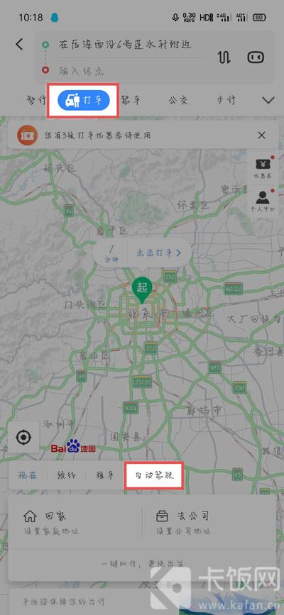 2、然后在上方选择【打车】,在下方选择【自动驾驶】;