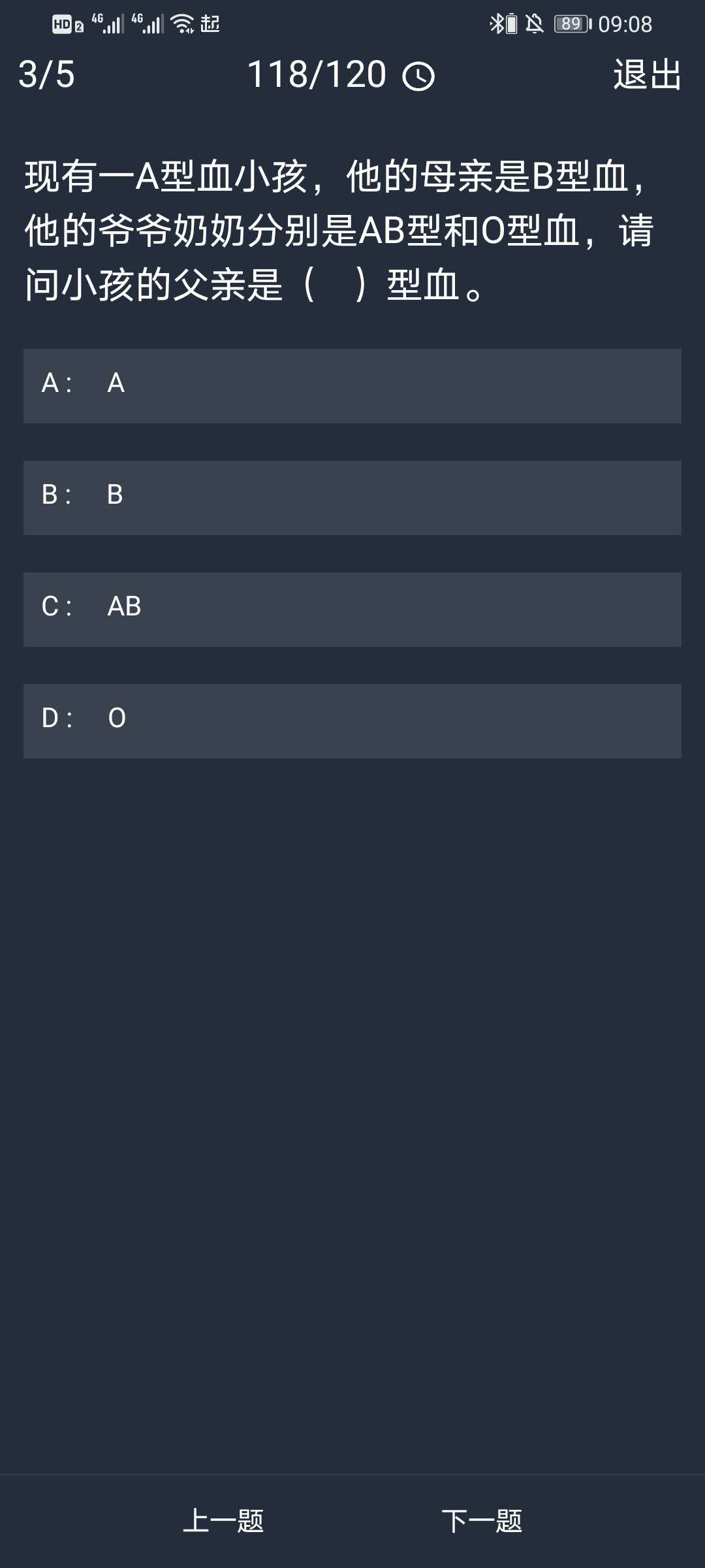3、现有一A型血小孩,他的母亲是B型血,他的爷爷奶奶分别是AB型和O型血,请问小孩的父亲是()型血。