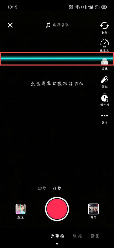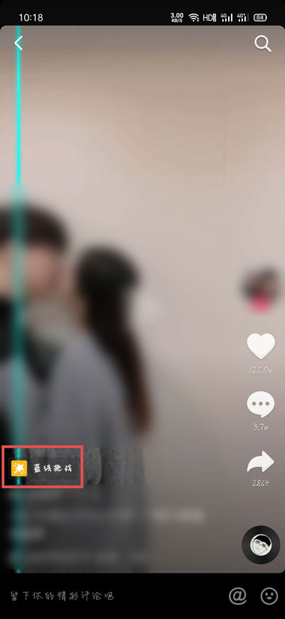 3、还可以通过其他用户拍摄的相关视频,左下角的【蓝线挑战】特效入口进入;