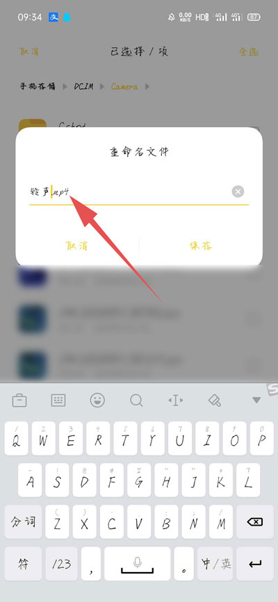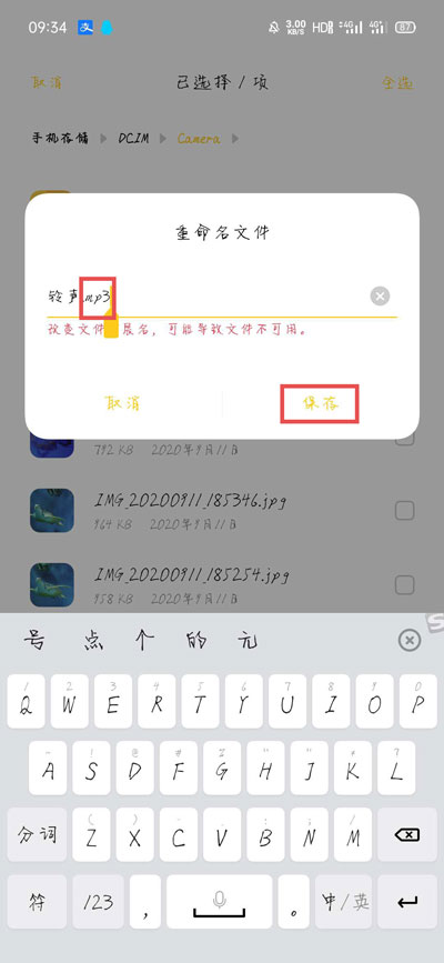 6、大家可以选择重新命名文件名字,然后将后方的【mp4】改为【mp3】;