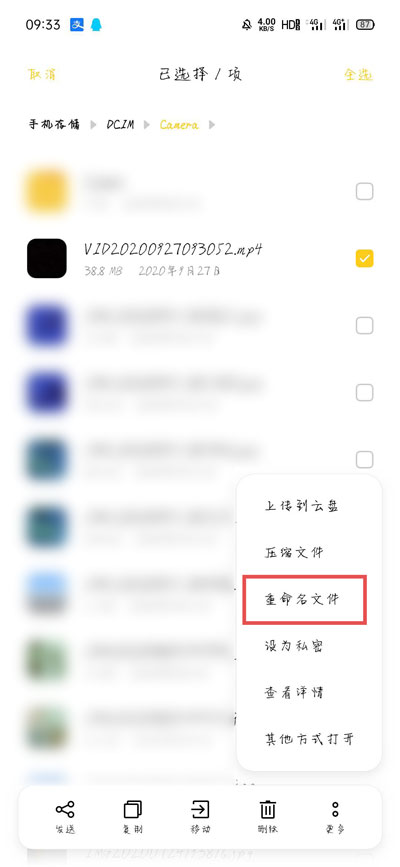 5、随后选择更多菜单中的【重命名文件】;