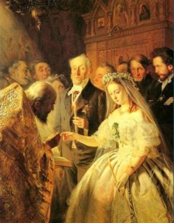 《不相称的婚姻》是俄国普基廖夫1862年创作的一幅布面油画,画中神父将一个结婚戒指戴到一个年仅十六七岁的新娘的手上,而她身旁的“新郎”则是一个可以做她祖父的白发老头。他手持蜡烛,目光斜视在神父要给新娘戴的戒指上。新娘低头无奈,左手无力地拿着蜡烛。她的眼皮浮肿,无穷的眼泪也无法逃脱这种厄运。新郎的头上只有几根稀疏的白发,他脸皮松弛,眼睑塌陷,王宁通过这幅画暗示了黄欣雨的现状。