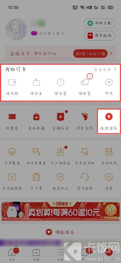 2、打开手机中的拼多多app,在【个人中心】,点击【待收货】进入;