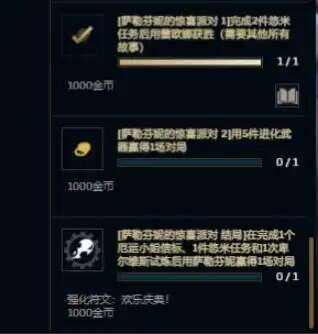 任务:在完成1个厄运小姐信标、1件悠米任务和1次卑尔维斯试炼后用萨勒芬妮赢得1场对局。