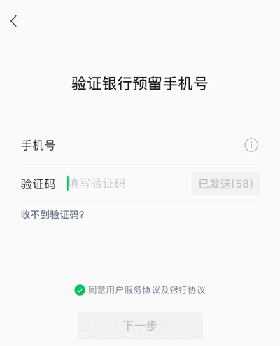 6、通过验证手机银行预留号码进行银行卡的绑定。