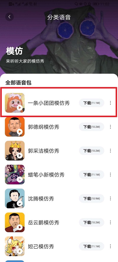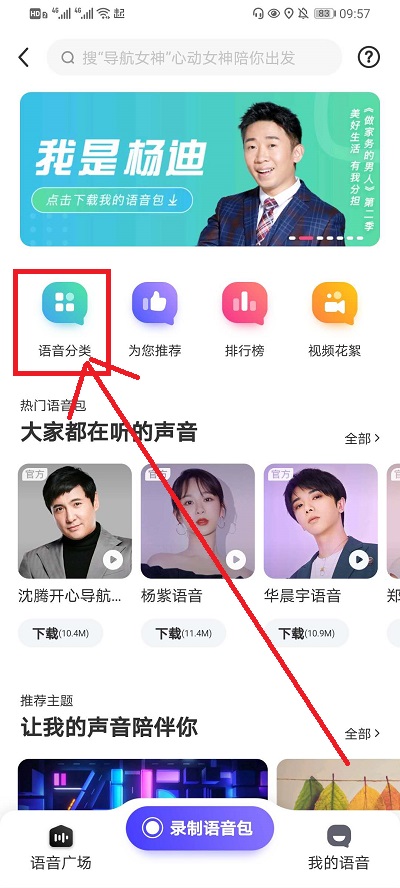 3、在语音包界面,点击语音分类,进入语音分类界面。