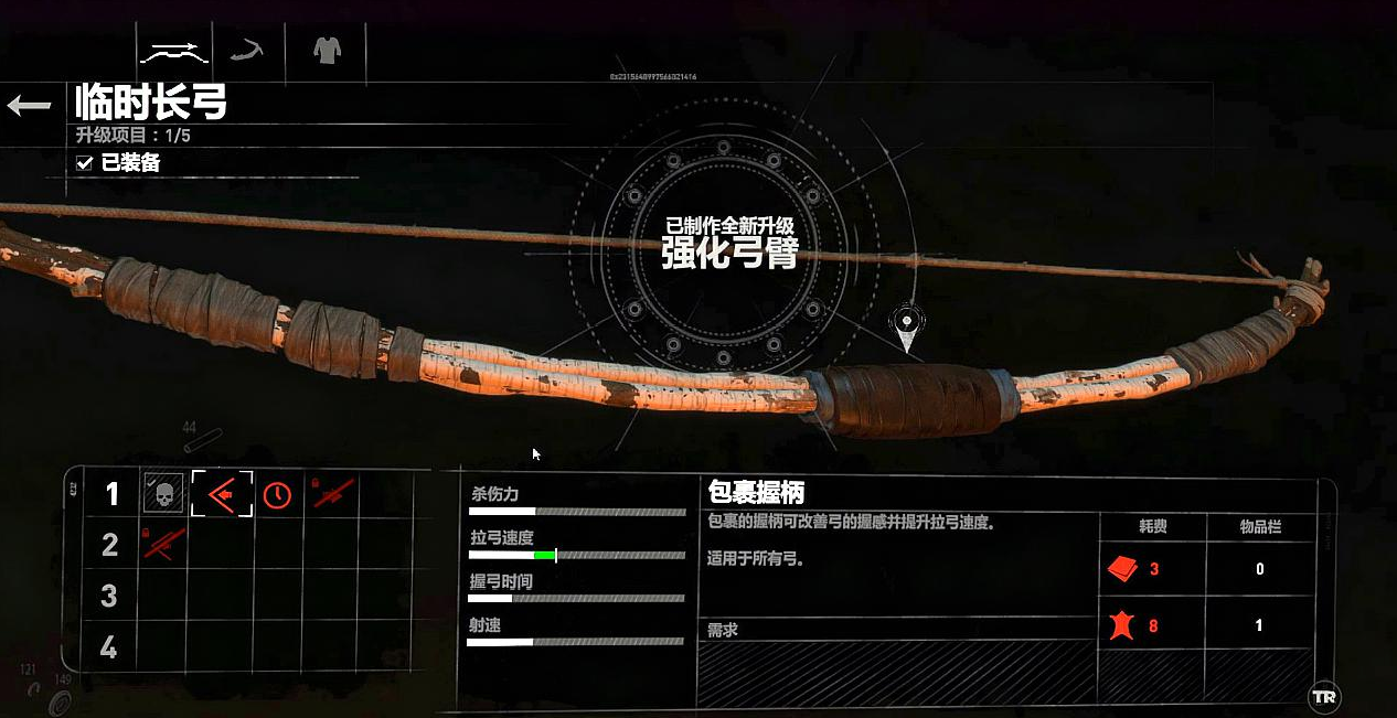 升级装备:游戏中的许多装备升级,如弓、攀爬斧和武器配件,都需要用到木头。