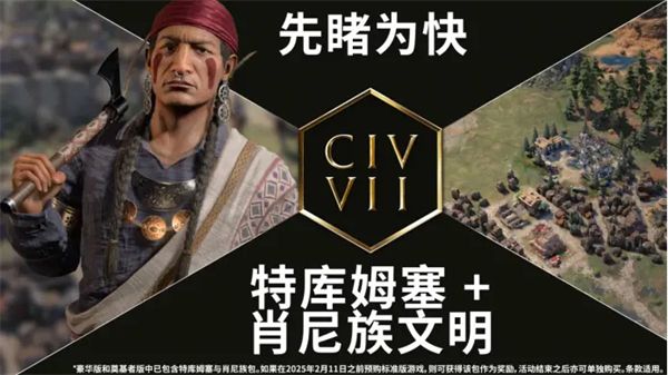 2、标准版包含了文明7的基本游戏内容,并且如果在正式发售前购买,还能获得预购奖励——特库姆塞与肖尼族DLC。
