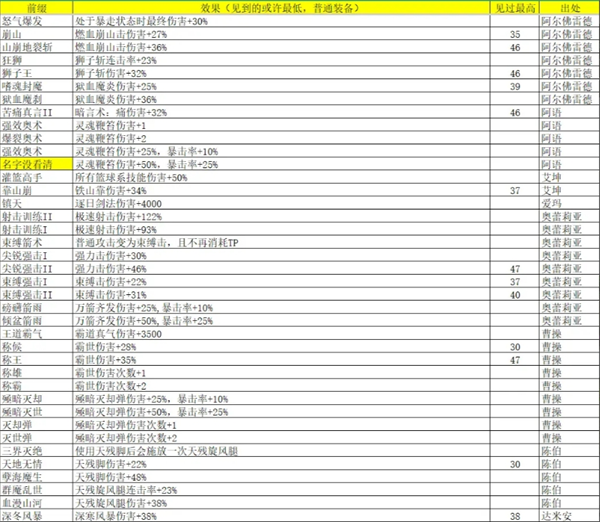 按照规律,可以得出一个攻击技能应该有4个辅助技能,高级:伤害 50%上限,低级:伤害 45%(只遇见过一个,不确定是否应用于全部,40%肯定有的)攻击次数 1, 2。那么完美的应该可以拿到四个
