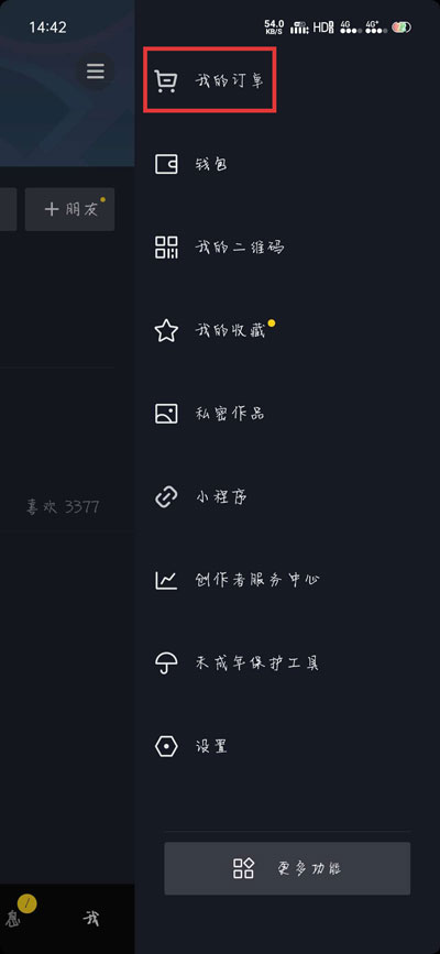 2、接着在菜单页面,点击最上方的【我的订单】一项;