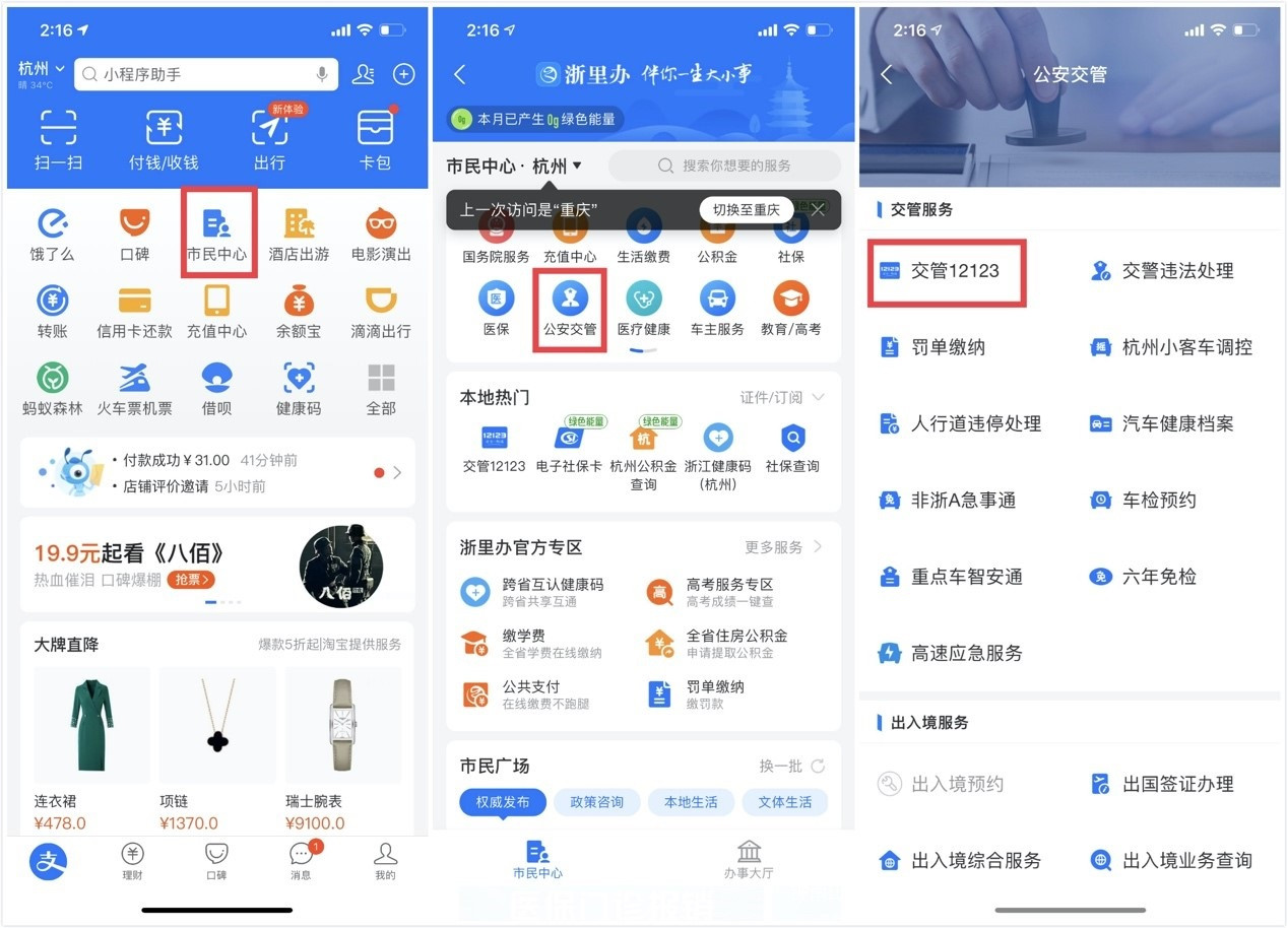 9 月 1 日 , 公安部官方互联网交通安全综合服务管理平台的唯一手机客户端 “交管 12123”小程序正式入驻支付宝。这是 12123 迎来的首个站外官方服务渠道。今后,车主和驾驶人再也不用担心跨省违章查不到的问题,只要为支付宝实名制用户上支付宝搜 “交管 12123”进入小程序,就可对绑定车辆进行全国范围内的交通违法进行查询。
