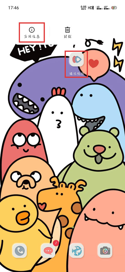 1、以oppo reno z手机为例,在手机桌面上长按腾讯视频的图标,选择【应用信息】;