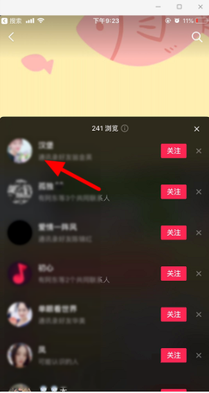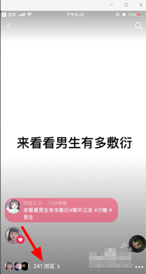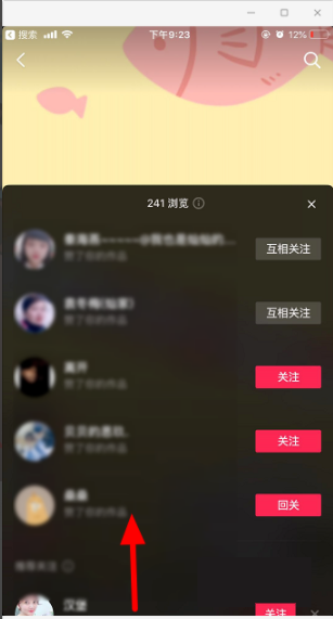 5、接着就可以看到所有浏览该视频和点赞的人啦,在上方显示的为点赞的用户,往下滑动;