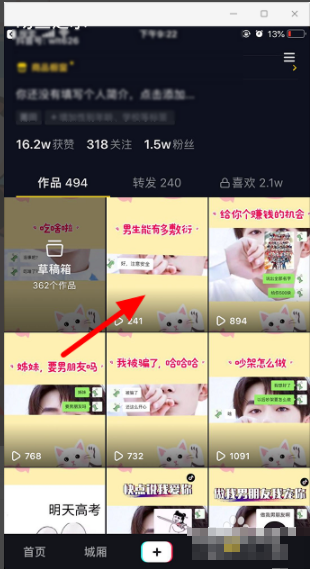 2、然后在自己的作品中,随便找一个视频作品点击进入查看;