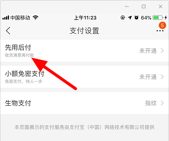 5、点击【先用后付】功能;