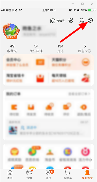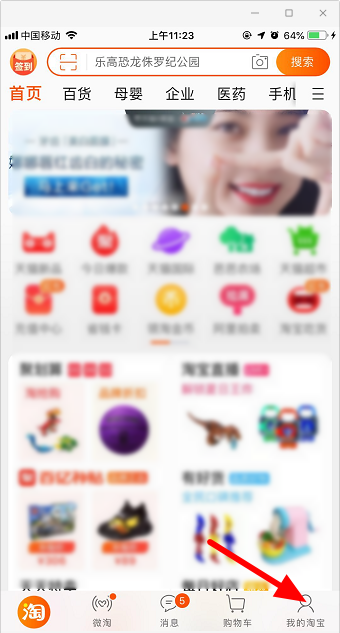 2、然后打开手机淘宝APP,登录对应的淘宝账号,进入【我的淘宝】页面;