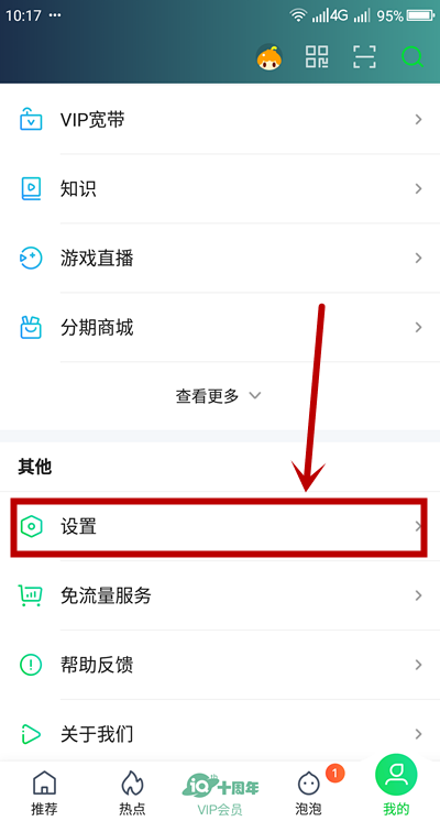 2、进入我的页面之后,找到其他设置里面的【设置】一项;