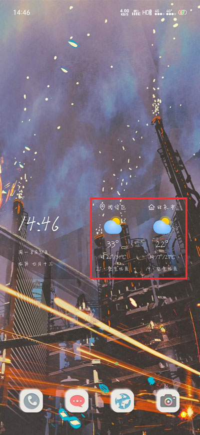 4、应用成功后,返回手机桌面,查看桌面插件,就可以看到两个城市的天气情况啦;