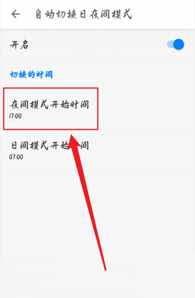 5、选择【夜间模式开始时间】以及【日间模式开始时间】;