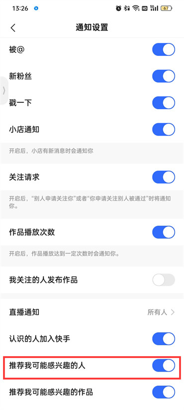 4.来到通知设置的页面中点击关闭【推荐我可能感兴趣的人】即可;