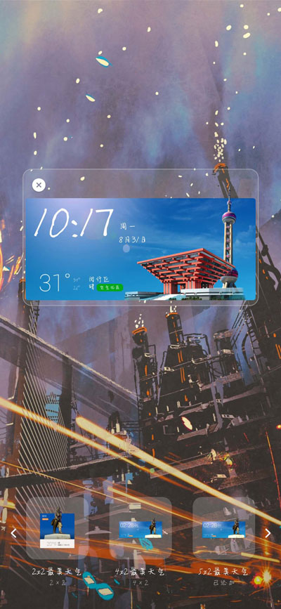 5、如果添加完成之后,需要修改最美天气插件的位置,可以长按并移动,也可以点击【移除】删除该插件;
