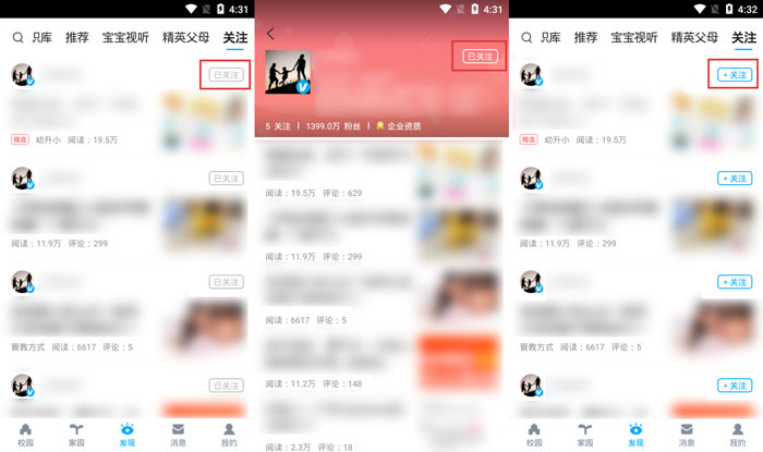 掌通家园怎么取消关注