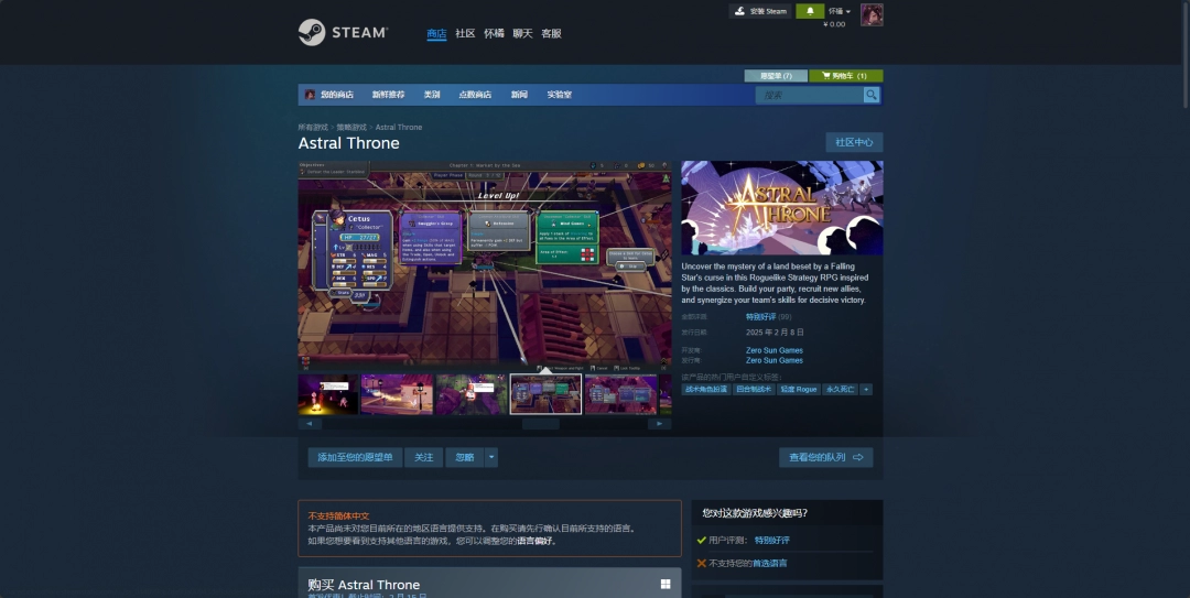 Steam平台购买链接:https://store.steampowered.com/app/2560500/Astral_Throne/。