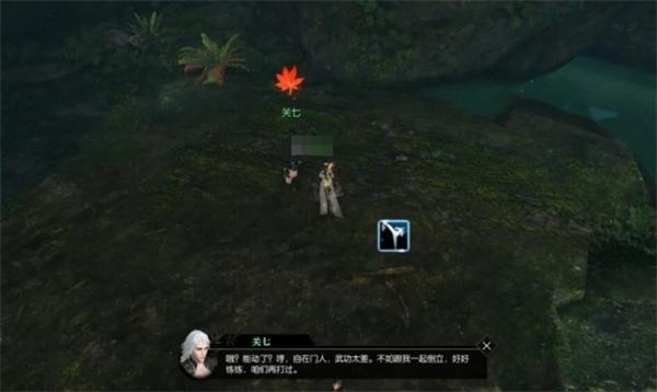 3、点击挑战关七进入山洞,与其对话后靠近关七开始剧情;