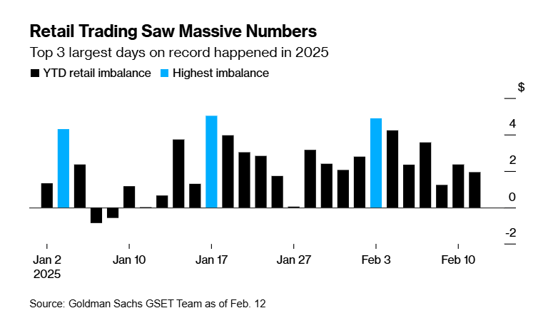 高盛首席技术策略师、资金流专家斯科特·鲁布纳(Scott Rubner)在给客户的电子邮件中表示:“散户投资者在CPI数据公布后逢低买入。所有人都在‘泳池’中,包括散户交易员、401(k)养老金计划的资金流入、年初配置需求和公司回购。”(“泳池”的概念取自巴菲特的名言:潮水退去方知谁在裸泳。)