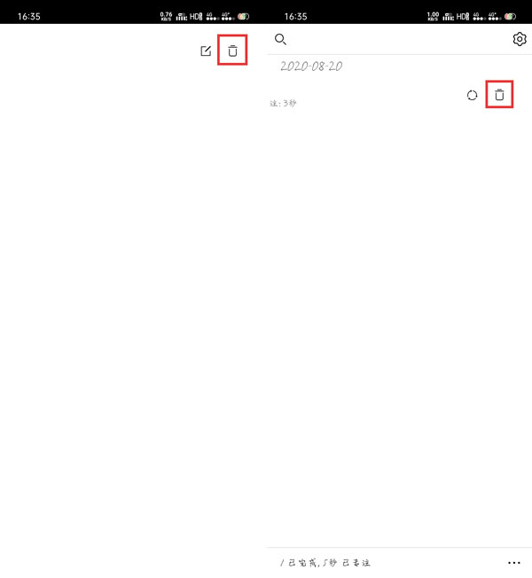 7、如果需要删除代办事件,以及专注模式记录,按住需要删除的记录或者事件,往左滑动选择【删除】即可;