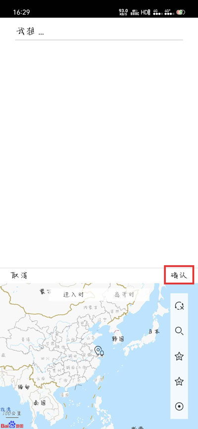 3、如果需要给当前时间添加一个位置,点击右上角的【定位】,选择添加“进入时”的位置,以及“离开时”位置;