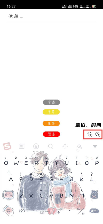 2、然后输入事件的内容(内容的长度不限),在输入法的上方可以选择时间的紧急程度:普通(默认)、中等、重要、紧急;
