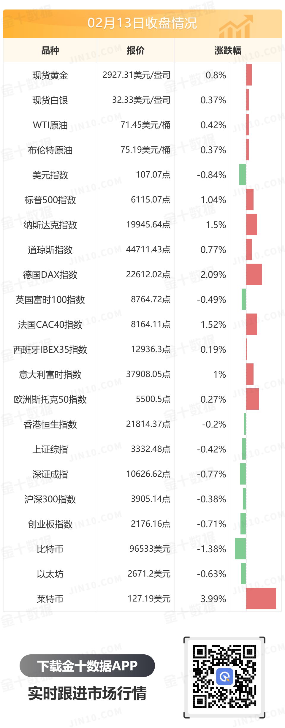 5、俄乌冲突-克宫:乌克兰将参加俄乌和平谈判;特朗普:俄乌将一同参与所有和平谈判,美俄官员将在周五会晤。希望俄罗斯能重返G7,将其踢出是一个错误;乌总统顾问:不打算在慕尼黑会议上与俄方进行谈判,在谈判之前需达成共识;俄罗斯股市涨超5%,交易所暂停交易。