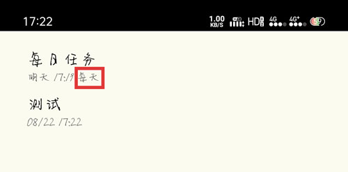 4、返回首页面后,可以看到我们添加的每天任务的是“每天”都提醒。