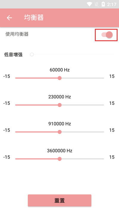 4、开启最上方的【使用均衡器】滑块,之后就可以根据自己的需要设置均衡器的效果了;