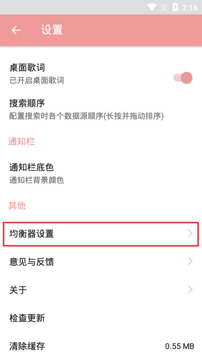 3、进入设置之后,滑动页面找到“其他”下面的【均衡器设置】;