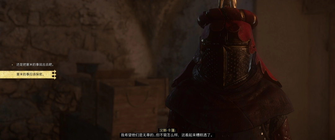 3:审讯结束后和卡蓬对话,选“塞米的事应该保密"(不选也没关系)
