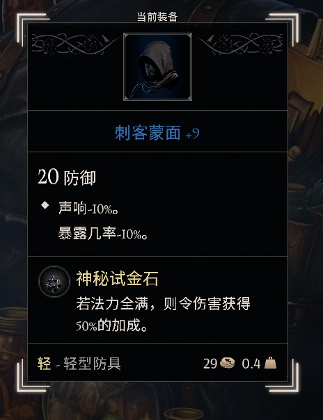 身上的盔甲,前期穿骑士套,打完加拉哈德可以穿他身上的套装,但我更喜欢刺客套装,主打一个潜行。