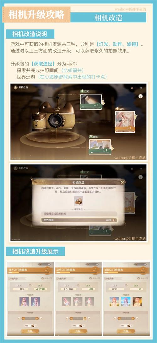 2、通过【世界巡游】打卡,可以获取【相机改造】的【升级包】,也可通过完成探索拍照(例如福鸣之井)获取 【升级包】;