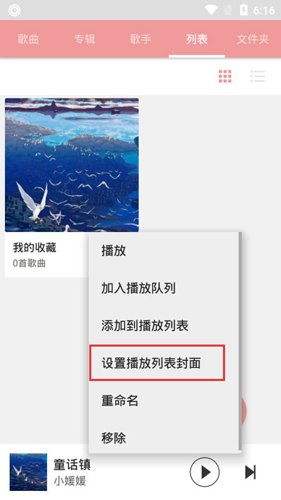 2、(我的收藏封面默认使用收藏的第一首歌头像)选择【设置播放列表封面】;