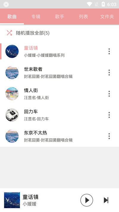 5、需要注意的是,更换专辑封面之后,【歌曲】页面的歌曲头像也会随着更换,同一个专辑内的所有歌曲头像一并改变。