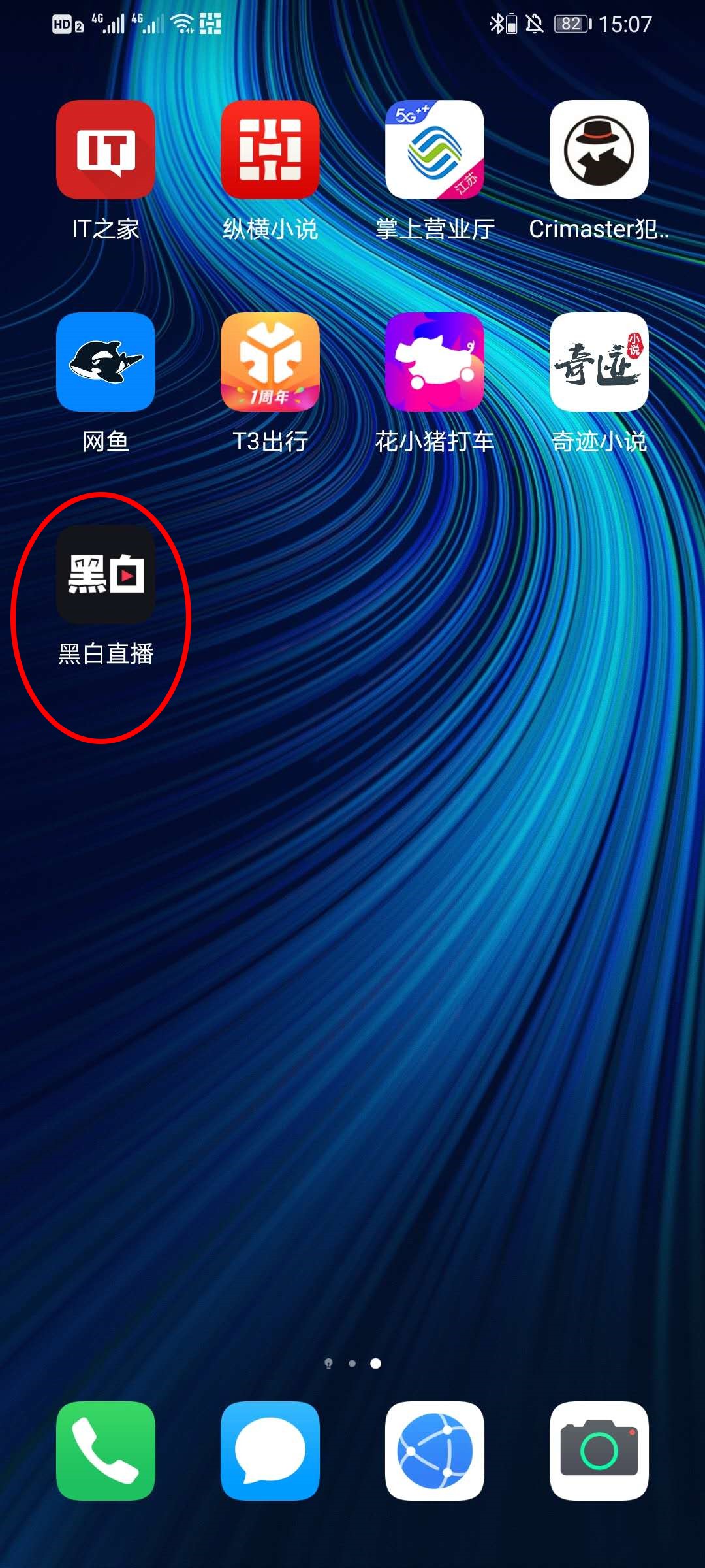 1、下载黑白直播到手机上,点击打开进入黑白直播。