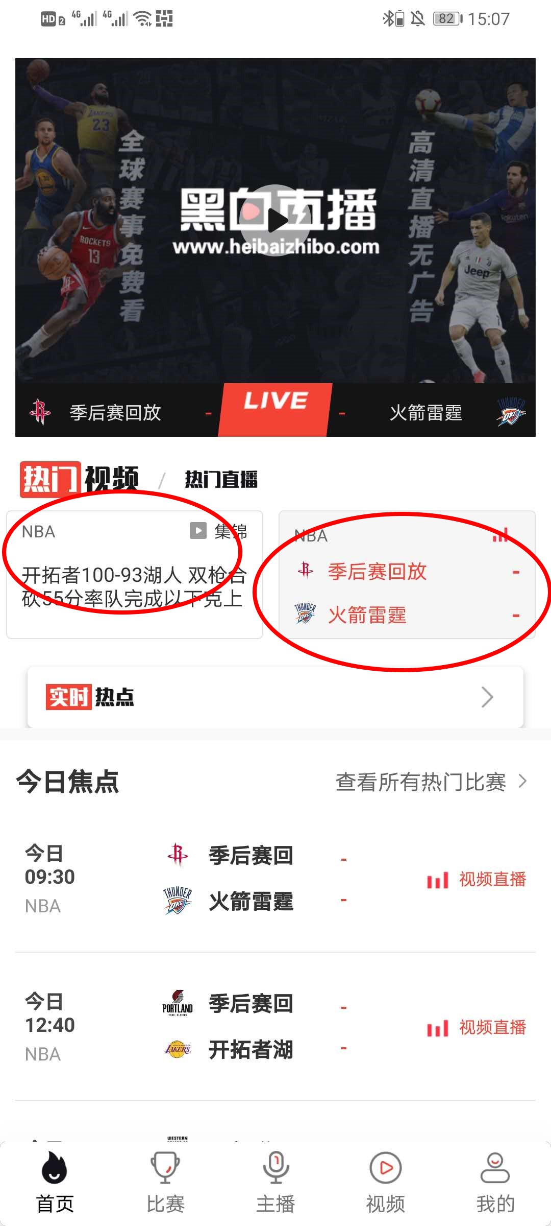 2、在黑白直播的首页就可以看到球赛的直播和回放。