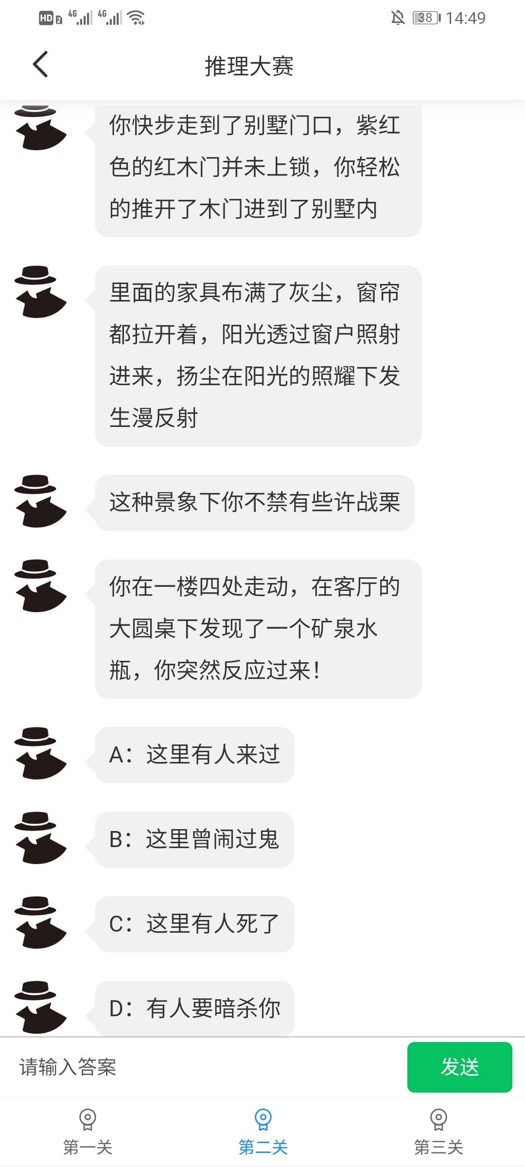 推理大赛的第二关名为邀请函闯关,带有一定的剧情,并且主要的环节就是让玩家根据情形进行解密。