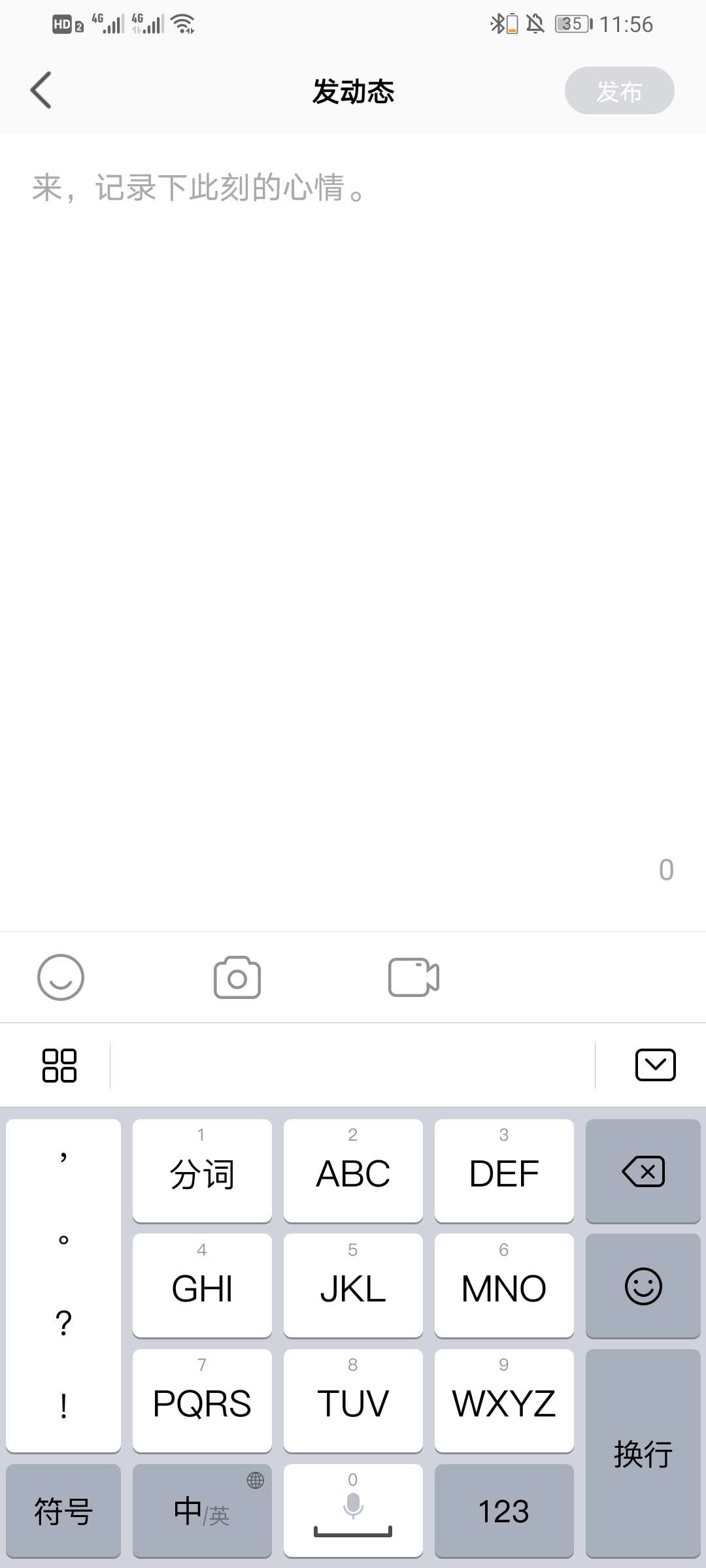 2、在发表动态界面,编辑好内容后点击右上角的发布即可。